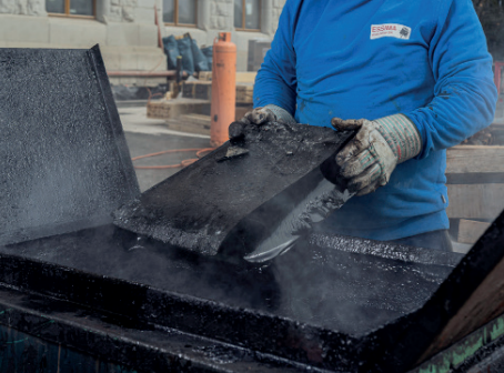 Il alimente la chaudière avec des blocs de bitume, chauffés entre 200°C et 220°C.